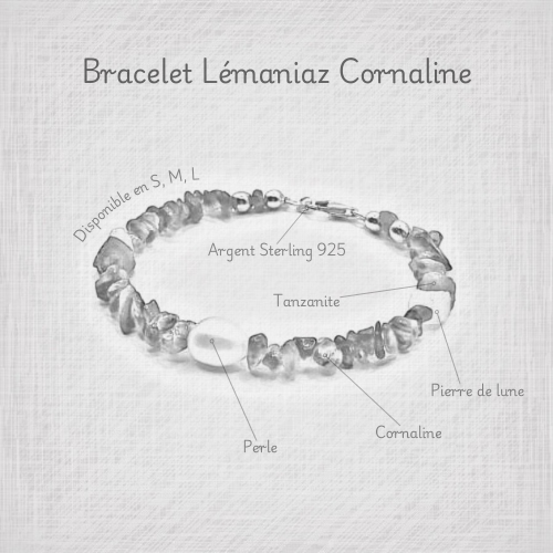 - Bracelet en Cornaline, Pierre de lune, Tanzanite et Perle ovale d'eau douce blanche.