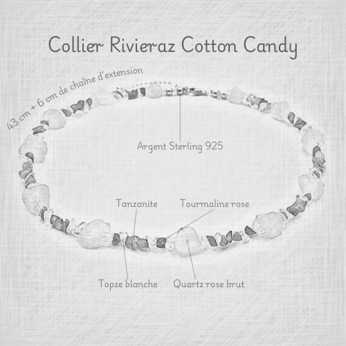 - Collier en Quartz rose, Tourmaline rose, Tanzanite et Topaze blanche.